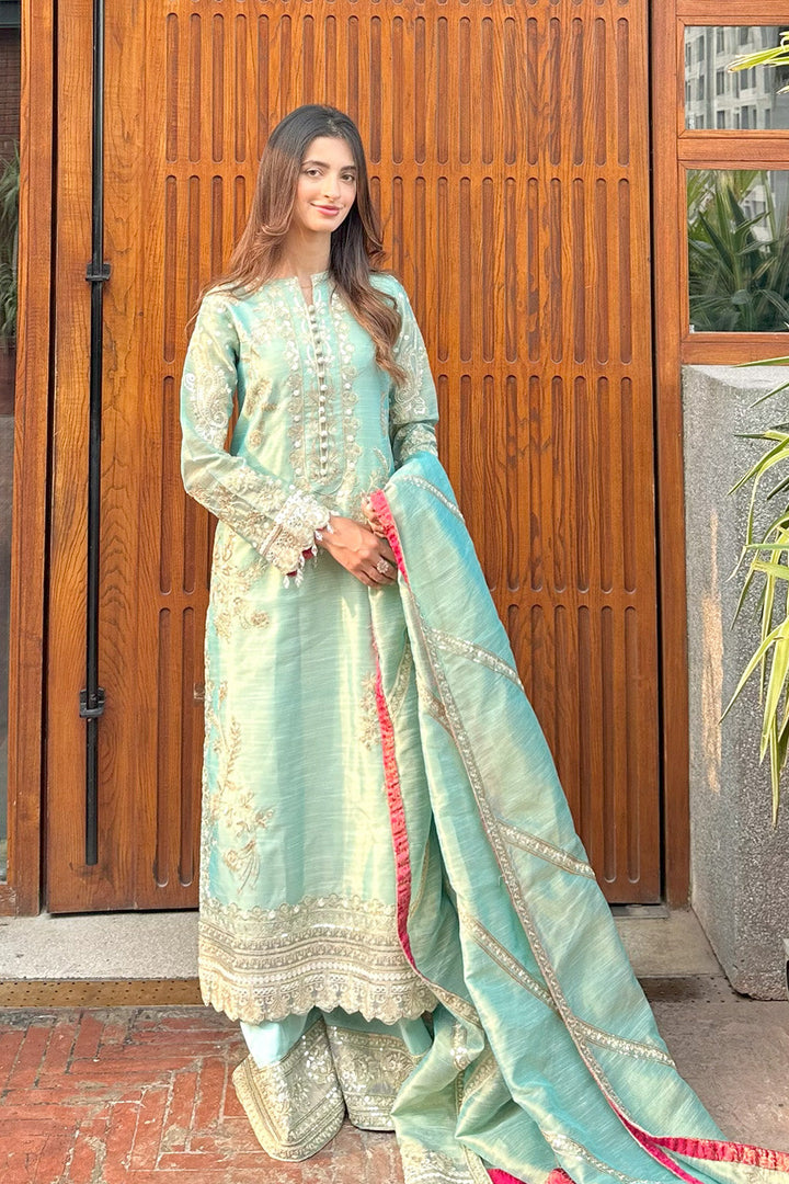 Embroidered Sleeves, Front, Back Daman Patti (Tissue) 1.80 Yards