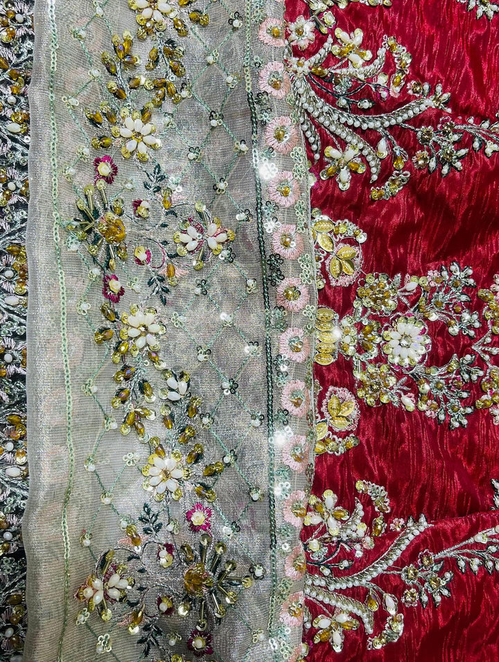 - organza emroidered handmade dupatta