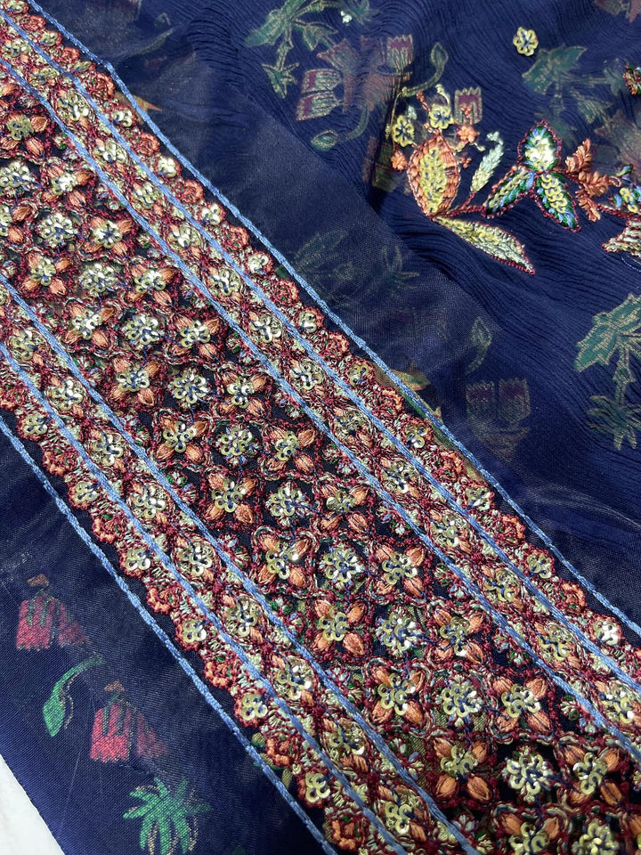 - Embroidered Dupatta Pallu Border (Chiffon) 2.25 Meters